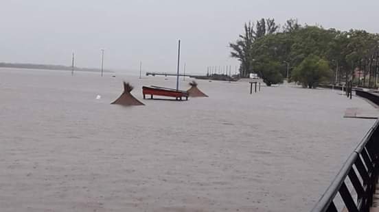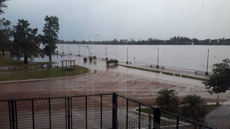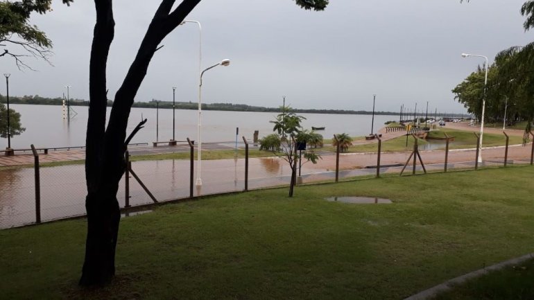 El río Uruguay tapó por completo la costanera de la localidad. Las autoridades estudian de cerca el comportamiento del río ante las incesantes lluvias.