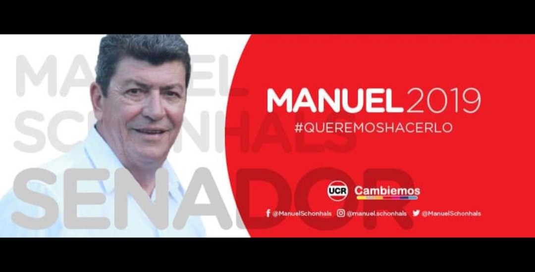 Dentro de Cambiemos habría una interna, ya que Manuel Schöhnals también ha lanzado su precandidatura como senador. Cabe destacar, que el exintendente y actual Secretario de Obras y Servicios Públicos, es el único de ese espacio que en se reconoce dentro de Cambiemos en las gráficas que circulas en redes sociales y espacios públicos.