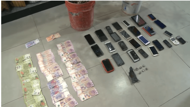 A los individuos, en tanto, los policías les incautaron 61.500 pesos, 21 teléfonos celulares, una pistola calibre 9 milímetros con la numeración suprimida, varias municiones, dos handys, 200 gramos de marihuana, plantas de cannabis, llaves de diferentes vehículos, bolsos y carteras de dama y otros elementos de importancia.