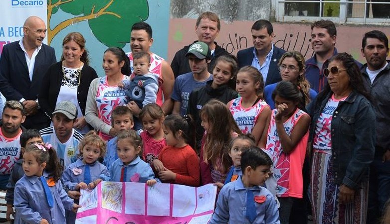 Este martes, la directora del Instituto Becario, Claudia Gieco, encabezó una jornada solidaria en Nogoyá. La Escuela Municipal de Atletismo donó al jardín de la Escuela Nº53 Yapeyú el mobiliario infantil de material reciclado que recibiera tras ganar la 6º edición de La Maratón del Becario.