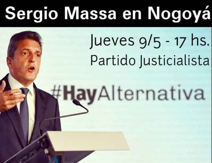 En la tarde de hoy, Sergio Massa, el líder del Frente Renovador, visitará la ciudad de Nogoyá.