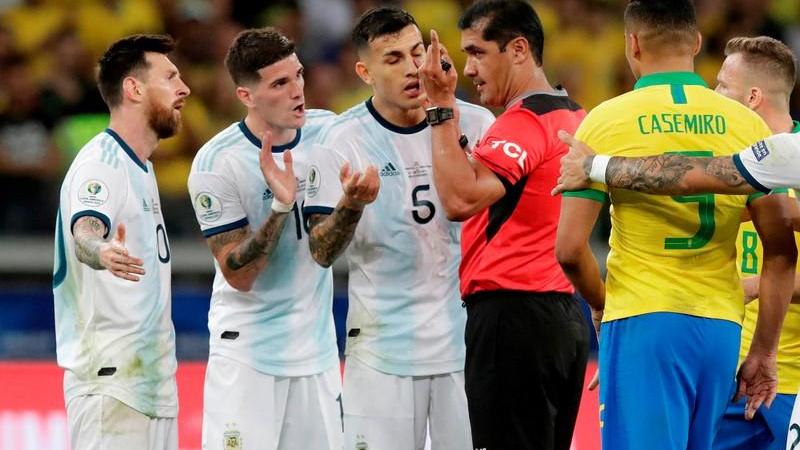 «Se cansaron de cobrar boludeces en esta Copa América y no fueron nunca al VAR. Te da bronca porque hicimos un esfuerzo muy grande, todas las boludeces fue para ellos y las tarjetas para nosotros. En esta Copa se cansaron de cobrar boludeces, manos boludas, penales pelotudos… Son jugadas que te van sacando de partido, te vas desquiciando. El árbitro nos dijo que nos iba a cuidar y nos faltó el respeto con el arbitraje que tuvo».
