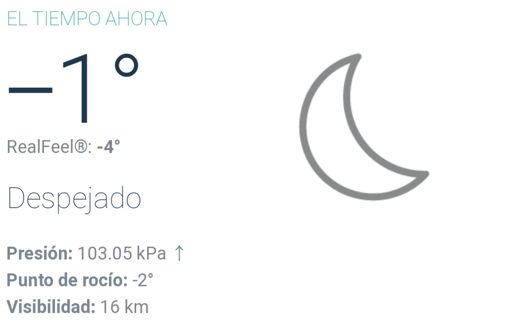 En nuestra ciudad, a las 5 de la mañana se registró una temperatura de -1°C .