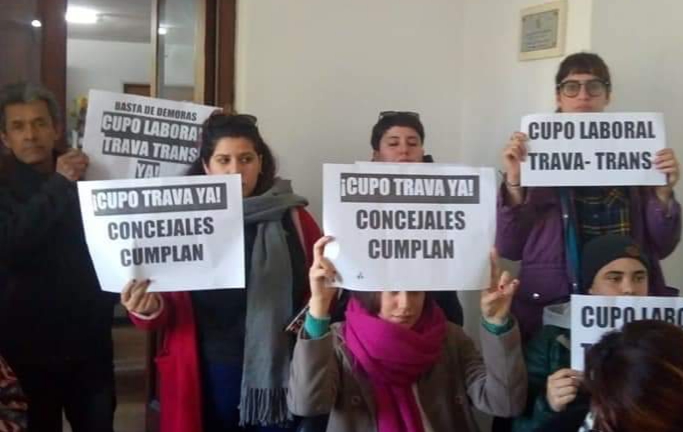 Integrantes del colectivo trava-trans irrumpieron en la sesión de hoy para exigir el tratamiento del proyecto del cupo laboral trans. Cabe destacar que esta semana el Intendente dispuso medidas regulatorias que impedirían la contratación de nuevo personal.