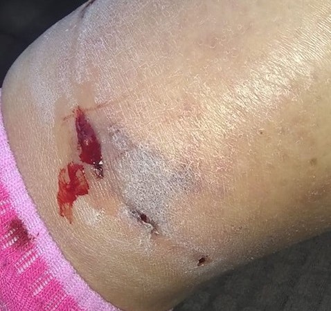 «Así le dejaron la pierna a mi esposa los perros de la plaza» mencionó un usuario de Facebook mostrando la foto de la herida. «Tuve que pedir permiso en mi trabajo para llevarla al hospital, estaba lleno, por lo tanto fuimos al sanatorio» contó y agregó que la atención le demandó un gasto de 1000 pesos en remedios.