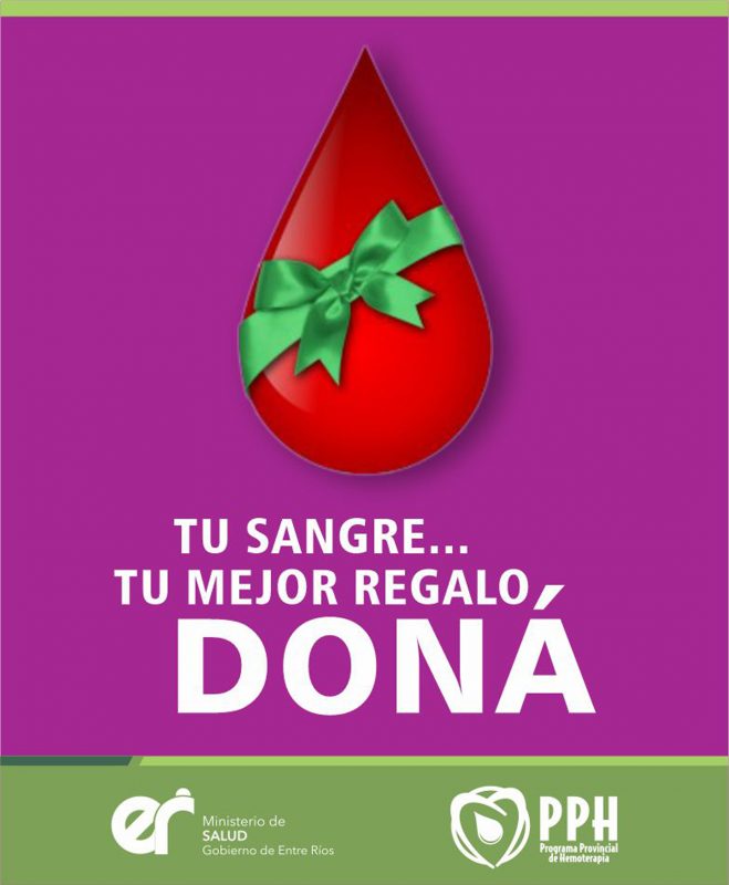 El Ministerio de Salud de Entre Ríos, a través del Programa Provincial de Hemoterapia (PPH), convoca a la población a seguir acercándose a donar sangre voluntariamente, de cara a las Fiestas de Navidad y Año Nuevo. El objetivo es reforzar los bancos de la red pública y contar con las cantidades necesarias para diferentes intervenciones.