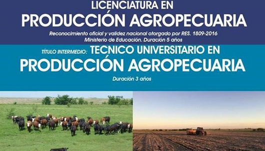 La Licenciatura en Producción Agropecuaria, se dicta en las instalaciones de la “Escuela Nº 01 Carlos María de Alvear”, ubicada en calle Maipú Nº 1552 de nuestra ciudad. Las inscripciones se realizarán en dicha institución, de lunes a Viernes de 18.00 hs a 20.30 hs.