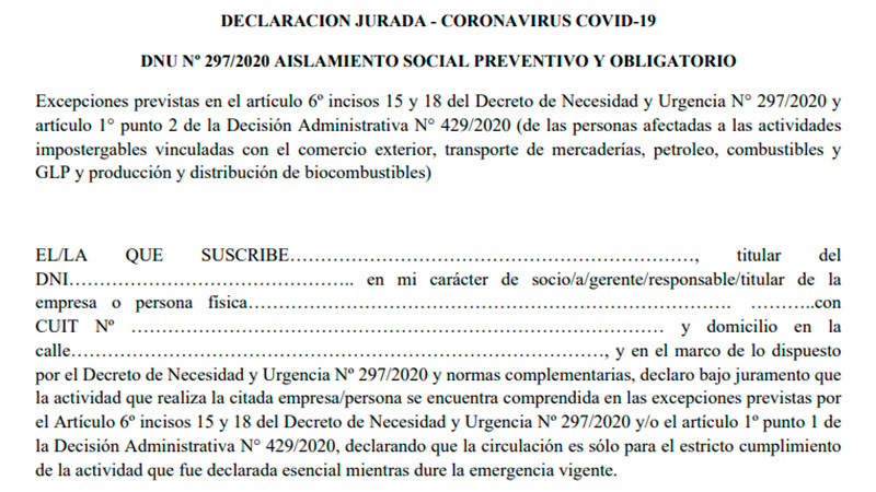 El mismo deberá ser presentado en los controles viales para comprobar, de manera clara y unificada, su excepción al aislamiento social, preventivo y obligatorio.
