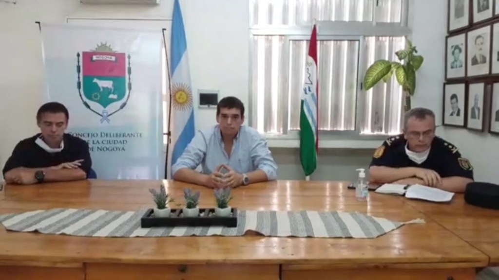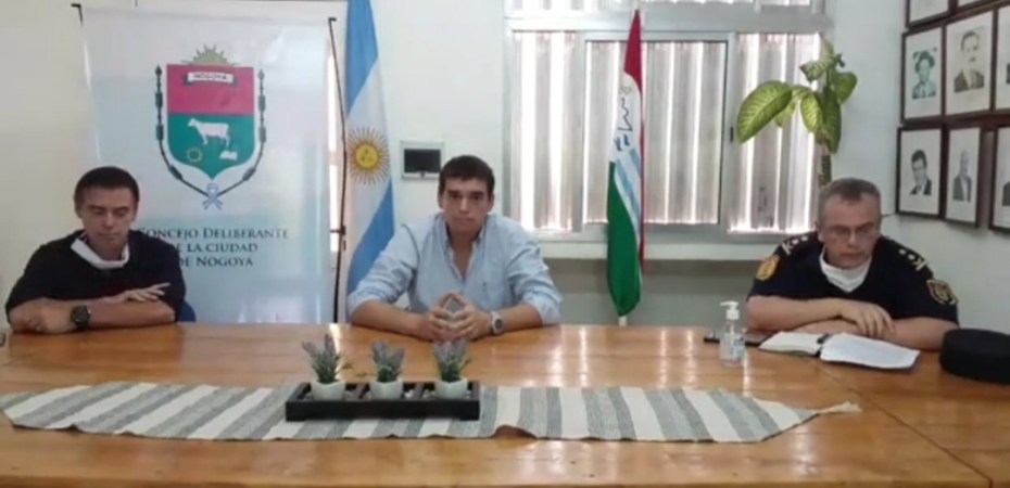 Este mediodía el intendente de la ciudad de Nogoyá, Rafael Cavagna, brindó una conferencia de prensa desde el Concejo Deliberante acompañado por el Director del Hospital «San Blas», Javier Ascua y el Jefe de la Policía Departamental, Crío Mayor Javier Oertlin.