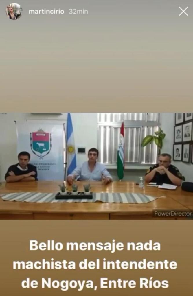 La repercusión fue tal que llegó hasta el youtuber e instagramer, Martín Cirio, también conocido como «La Faraona», quién se refirió al tema a través de sus redes sociales. En Instagram, a través de las stories publicó el fragmento de la conferencia de Cavagna con la leyenda «Bello mensaje nada machista del intendente de Nogoyá, Entre Ríos». Y seguidamente agregó: «¿No hay nadie que lo asesore? ¿Nadie le dice señor, este mensaje atrasa setenta millones de años?» y finalizó: «el país y el mundo ya no están para este tipo de mensajes.»