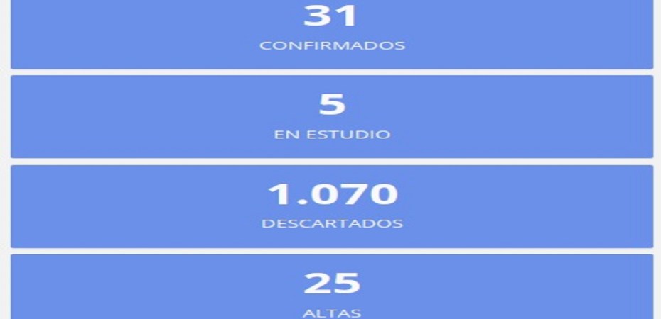De este modo, la provincia mantiene 31 casos confirmados, de los cuales 25 ya recibieron el alta. Además, hay 5 casos en estudio y ya han sido descartados 1.070 casos sospechosos.