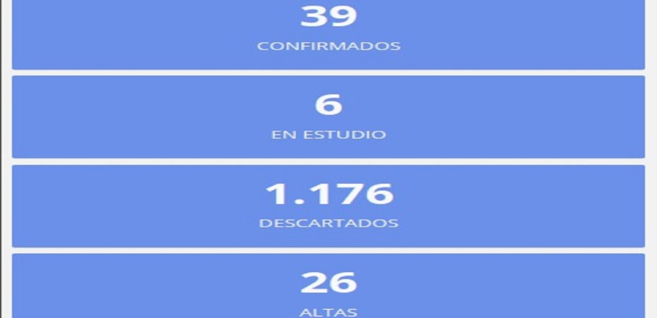 De ese modo, en la provincia son 39 los casos confirmados, permanecen 6 casos en estudio ,26 fueron dados de alta y 1.176 ya han sido descartados.