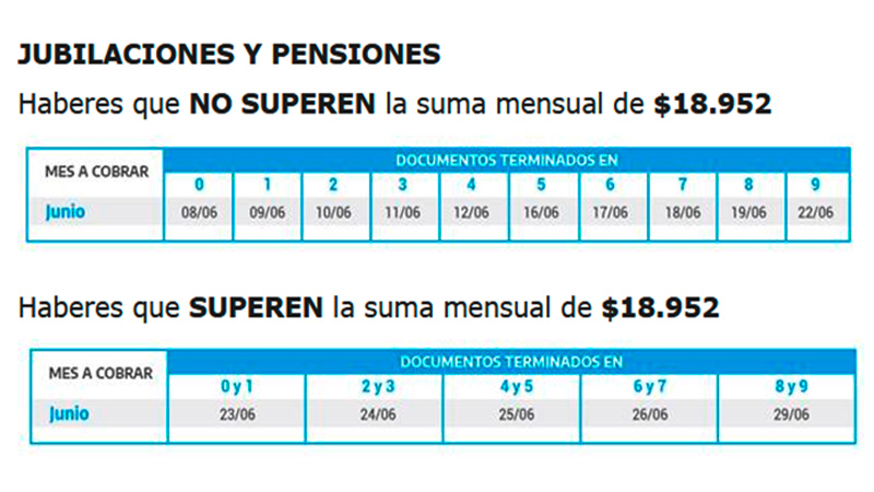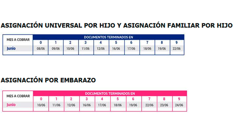 Con este esquema, hoy comenzaron a cobrarlo los titulares de la AUH y terminarán de hacerlo el 22 de junio mientras que los titulares de la AUE comenzarán a hacerlo el miércoles y concluirán su cobro el 24 de este mes.