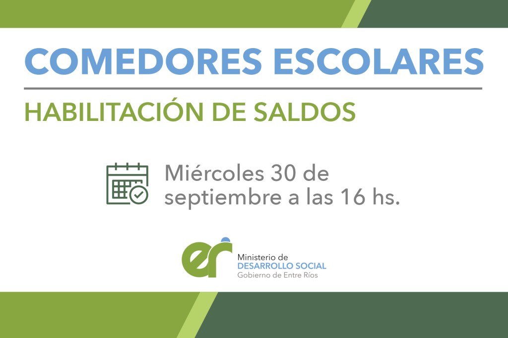 De acuerdo a lo informado desde el Ministerio de Desarrollo Social, desde las 16 horas de este 30 de setiembre se encuentran acreditados los fondos para comedores escolares, comunitarios y de hogares de adultos mayores.