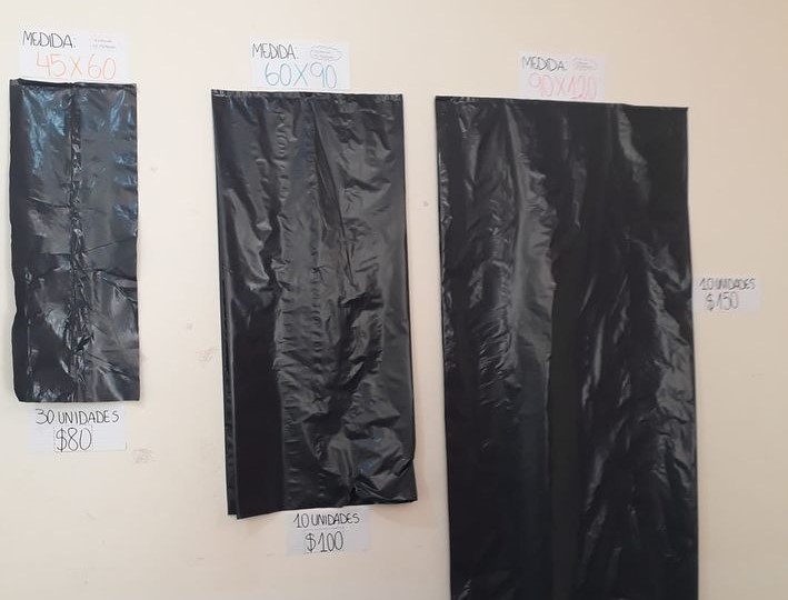• 60 x 90, espesor 35 micrones, el paquete de 10 unidades a $100.