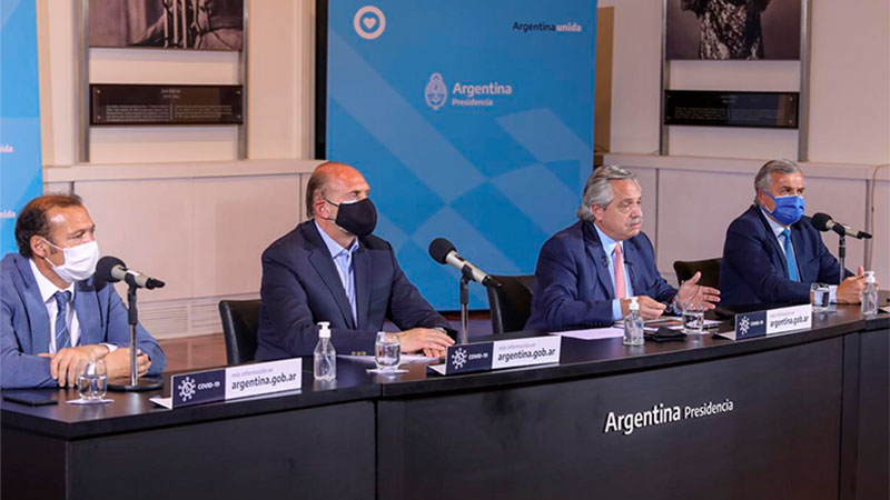 El mandatario expresó que así lo decidió en consenso con los gobernadores durante la extensa reunión virtual que mantuvieron ayer. «Les propuse seguir este mecanismo y estuvieron de acuerdo en que trabajemos juntos para encarar la etapa que se viene. Lo que vamos a hacer es disponer en distintos departamentos de 18 provincias, medidas que permitan una disminución intensa y transitoria de la circulación de personas durante los próximos 14 días», sostuvo el Presidente, quien llamó a todos los argentinos a «seguir trabajando cuidando los protocolos».