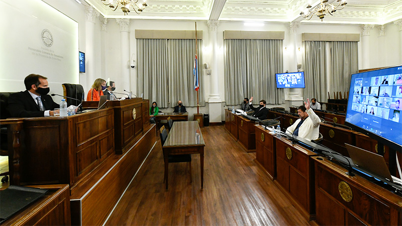 Este miércoles se desarrolló la 16º sesión ordinaria del 141º Período Legislativo de la Cámara de Senadores de Entre Ríos. La vicegobernadora y presidenta del Senado, Laura Stratta, presidió el debate desde el recinto, con la presencia de los presidentes de las dos bancadas legislativas. El resto de las y los senadores asistieron a la sesión mediante videoconferencia.