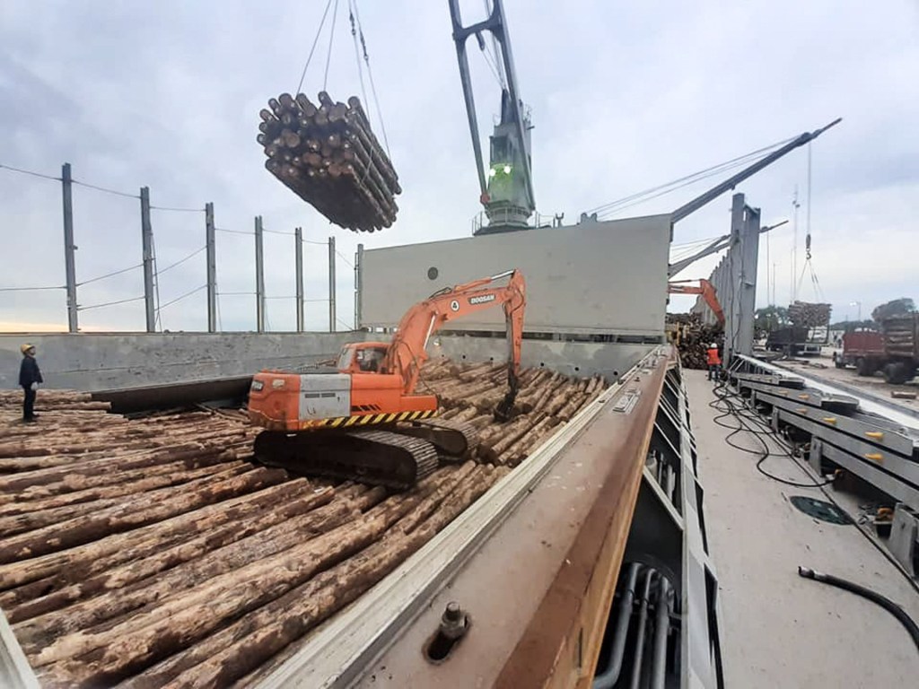 Este martes se completó una nueva exportación de troncos de madera de pino, a través de un buque ultramarino, desde los puertos de Concepción del Uruguay e Ibicuy.