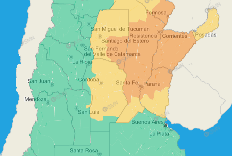 En tanto, continúan bajo alerta amarillo Misiones, casi toda Córdoba y parte de las provincias de Santiago del Estero, Salta, Chaco, Formosa, Santa Fe y Entre Ríos.