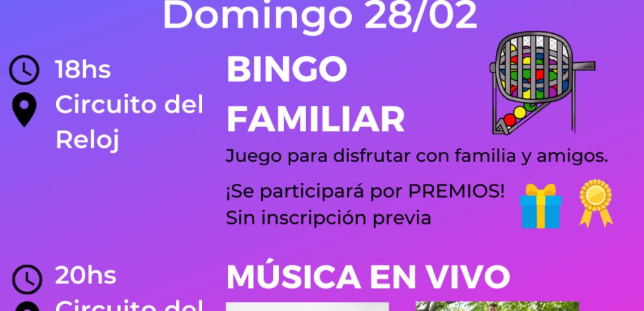 a las 18hs en el Circuito del Reloj. MÚSICA EN VIVO. ![]()