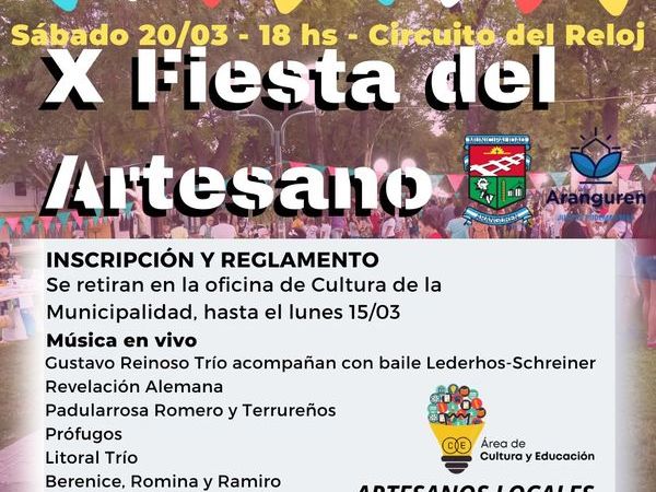 ARTESANOS LOCALESINSCRIPCIÓN Y REGLAMENTO Se retiran en la oficina de Cultura de la Municipalidad, hasta el lunes 15/03.