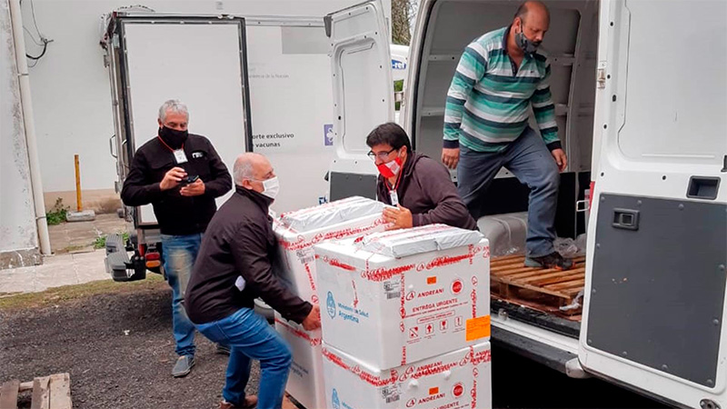 En el marco del Plan Rector de Vacunación, las dosis que llegaron este sábado a Paraná ingresaron a la cámara de frío. 7500 ya están siendo distribuidas a 16 ciudades de la provincia, mientras que 2100 serán destinadas a los vacunatorios de la capital entrerriana y a localidades previstas en el plan.