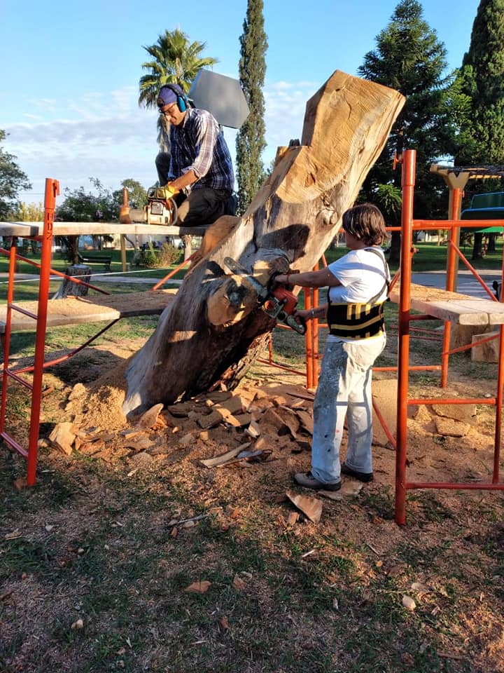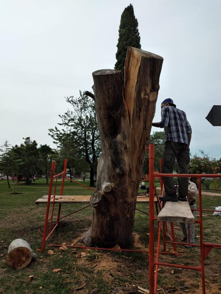 En el día de ayer lunes 5/04 se dio comienzo al tallado de árbol ubicado en plaza Francisco Ramírez.