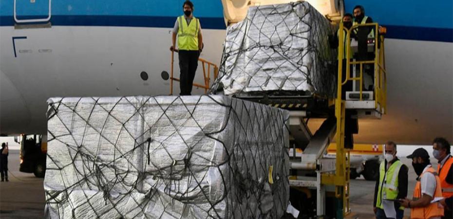 También en KLM arribaron 96 mil dosis para completar el primer embarque de un millón de vacunas Sinopharm que llegaron de China, ya que 904 mil dosis fueron transportadas por Aerolíneas.