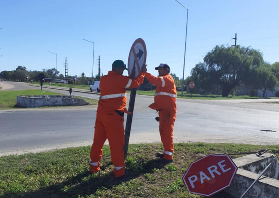 Se realiza la reposición, limpieza y también aplomado de los mismos en Ruta Nacional N° 12, en el tramo comprendido entre Nogoyá y Hernández.