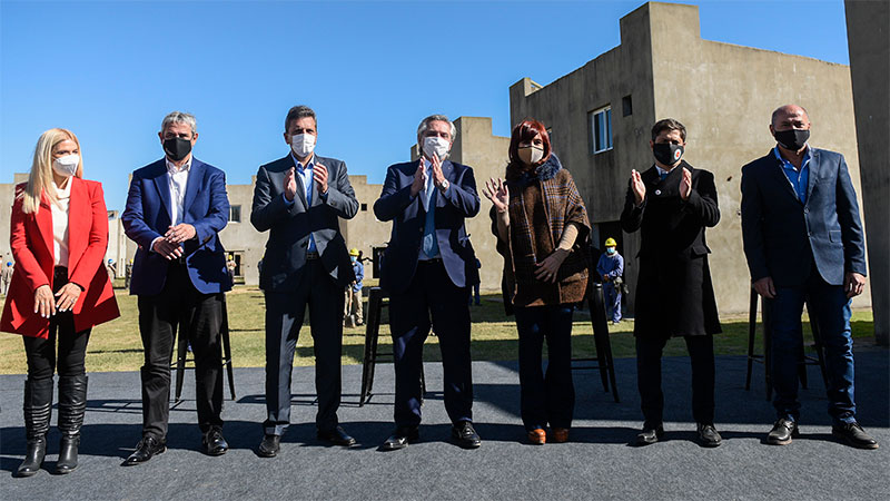 El presidente Alberto Fernández señaló hoy que «queremos poner de pie a la Argentina, después de un tiempo en el que la derrumbaron», al encabezar este mediodía, en el municipio bonaerense de Ensenada, el lanzamiento del Programa Reconstruir, destinado a finalizar la construcción de 55 mil viviendas, que quedaron abandonadas en 2016, con una inversión de 110.000 millones de pesos.