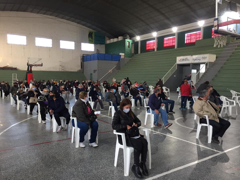 Tal como estaba previsto, previa inscripción y convocatoria de cada voluntario en recibir su dosis, muchos vecinos de la ciudad se acercaron y en pocos minutos recibieron su dosis en el Polideportivo Municipal.