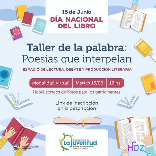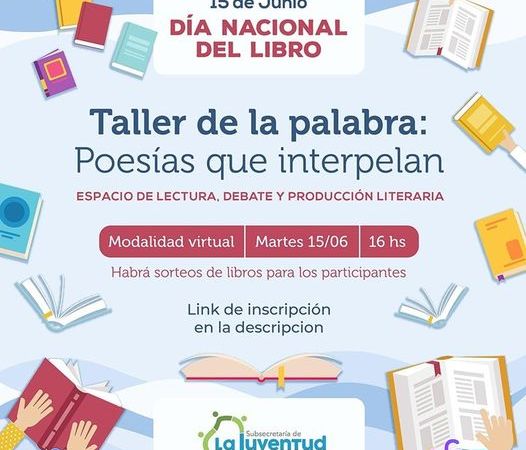 En el marco del Día Nacional del Libro, el próximo Martes 15 de junio a las 16hs se realizará un taller de la palabra donde nos encontraremos en un espacio de lectura, debate y producción literaria.