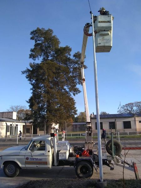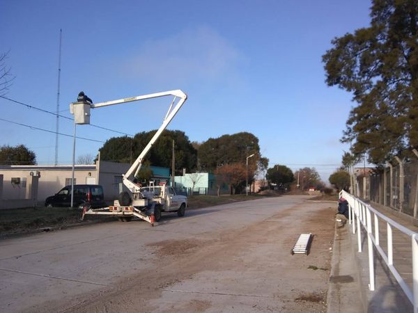 Con inversión del gobierno local, se lleva a cabo el recambio de luminarias existentes en la zona de calle Rosomando, tramo recientemente pavimentado frente a la Escuela N° 8, por luces de tecnología led para una mejor y más eficiente iluminación y un significativo ahorro energético.