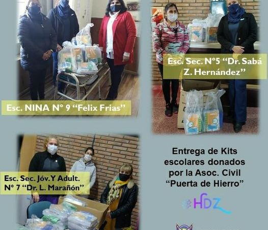 En la jornada del viernes 25 de junio, la vicepresidenta, Jorgelina Bernachea, junto con la encargada del Área de Cultura, Stella Maris Luque, realizaron la entrega de kits escolares donados por la Asociación Civil “Puerta de Hierro” de la ciudad de Nogoyá, en las distintas instituciones de nuestra localidad.
