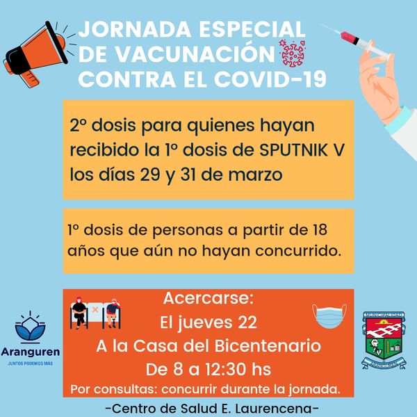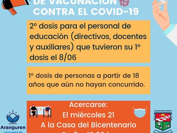 ATENCIÓN PERSONAL EDUCATIVO (1° dosis aplicada el 8 de junio) Y SPUTNIK V (1° dosis aplicada el 29 y 31 de marzo)