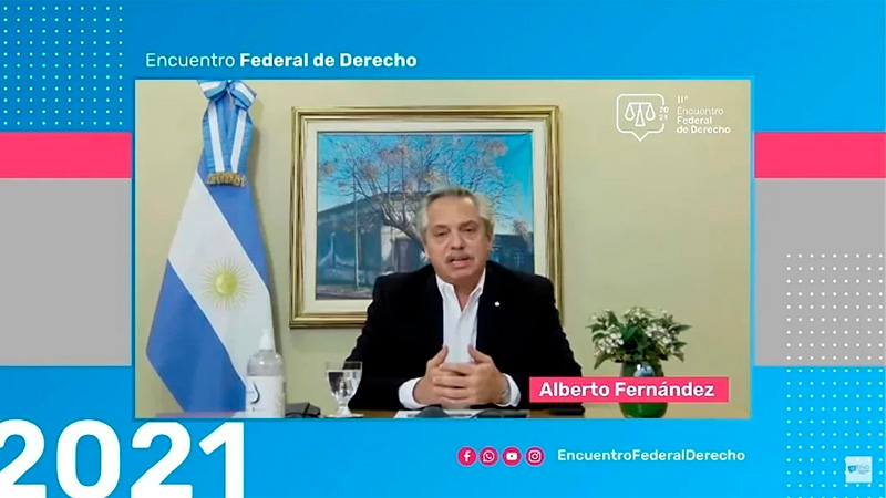 El presidente Alberto Fernández propuso este sábado la «necesidad de generar un debate para discutir» la duración de los jueces en sus cargos pero, al hablar durante el cierre del Segundo Encuentro Federal de Estudiantes de Derecho, aclaró: «No estoy proponiendo hacerlo ahora».