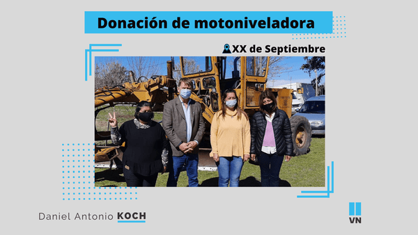 En la localidad de XX de Septiembre, se realizó el acto de entrega de una motoniveladora, por parte del 17 Distrito de Vialidad Nacional. Esta acción es el resultado del constante trabajo articulado entre Nación, Provincia y cada uno de los municipios, juntas de gobierno y comunas.