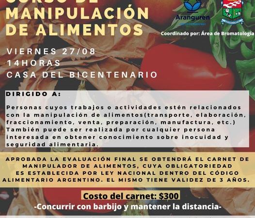 Aprobada la evaluación final se obtendrá el Carnet de Manipulador de Alimentos, cuya obligatoriedades establecida por Ley Nacional dentro del Código Alimentario Argentino. El mismo tiene validez de 3 años.