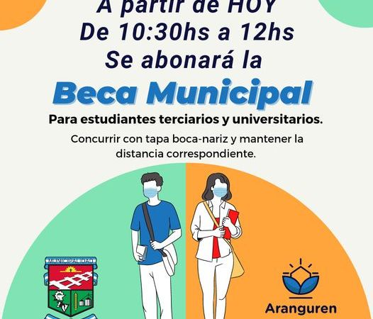 A partir de HOY miércoles 8 de septiembre de 10:30 a 12hs se abonará la Beca Municipal para estudiantes terciarios y universitarios.