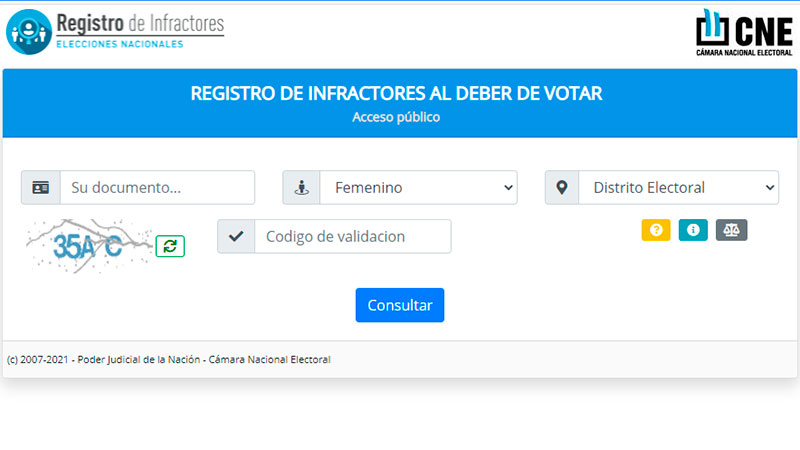 La multa puede abonarse por Internet, a través del portal del Registro de Infractores al Deber de Votar de la Cámara Nacional Electoral, donde también puede presentarse la justificación en el caso de aquellos que estén bajo alguno de los causales permitidos para la ausencia electoral.