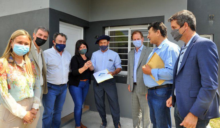 Bordet fue recibido por el presidente de junta de gobierno Ernesto Raisevich, para hacer entrega de estas viviendas financiadas por el gobierno provincial en el marco del Programa Primero Tu Casa. La inversión supera los 25 millones de pesos.
