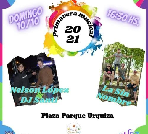 A partir de la hora 16,30, podrás deleitarte en Plaza Parque, J. J. de Urquiza, del sonido de Nelson López junto al DJ Santi, de la ciudad de Nogoyá y alrededor de la hora 19 de la función musical del Grupo La Sin Nombre de la ciudad de Ramírez; trae tu sillón más cómodo, mate y disfrutá de un domingo especial.