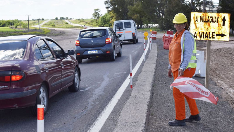 Llamó la atención de varios automovilistas. Actualmente, en la construcción de la autovía de la Ruta 18, una mujer se desempeña como banderillera. Marisol organiza y corta el tránsito cuando las tareas así lo requieren.