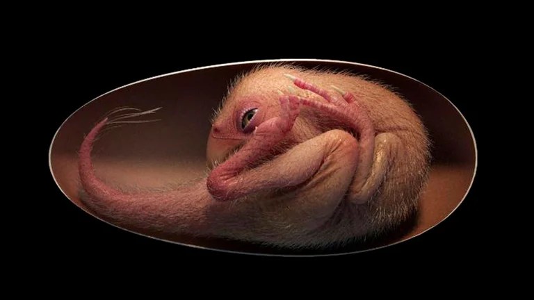 El espécimen “semeja exactamente un polluelo enrollado en su huevo, lo que aporta una prueba adicional que las numerosas características de las aves actuales derivan de sus ancestros dinosaurios”, agregó.
