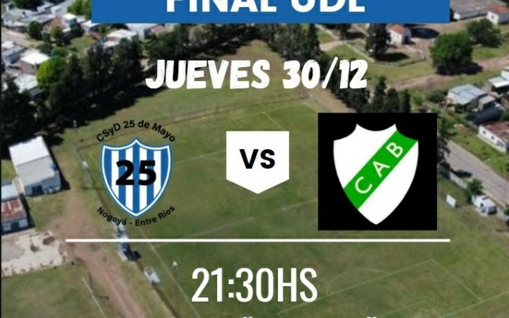 Con motivo de jugarse el próximo día JUEVES 30/12/2021 a partir de las 21:30 Hs. el encuentro por la FINAL -Vuelta-, TORNEO UNION DEPORTIVA DE LIGAS NOGOYA- TALA-VICTORIA, COPA OSPE entre el Club 25 de Mayo de Nogoyá y el Club Banfield de Victoria, desde la Jefatura Dptal. Nogoyá de la Policía de Entre Ríos, en conocimiento y acuerdo con las autoridades del Club Social y Deportivo 25 de Mayo se informan los siguientes puntos a saber: