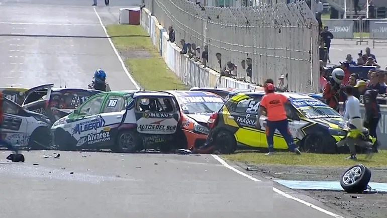 Según las primeras informaciones, una falla en el vehículo del piloto Renzo Blotta habría ocasionado la colisión en la que se vieron involucrados los autos de Facundo Della Motta, Agustín Bonomo, Facundo Rotondo, Maximiliano Bestani, Alex Conci, Juan Ignacio Torres, Gabriel Scordia, Nazareno Beguiristain, Mateo Nuñez, Francisco Calo, Iñaki Beitía, Sebastián Pérez, Juan Manuel Damiani y Martín Blasig. Fuente: ahora.com.ar