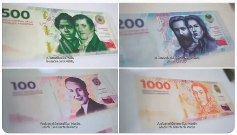 El presidente Alberto Fernández encabezó en casa de Gobierno el acto de presentación de los nuevos billetes con figuras patrias en las que estarán el General José de San Martín, Eva Duarte, Manuel Belgrano, Martín Miguel de Güemes. Juana Azurduy y Remedios del Valle.