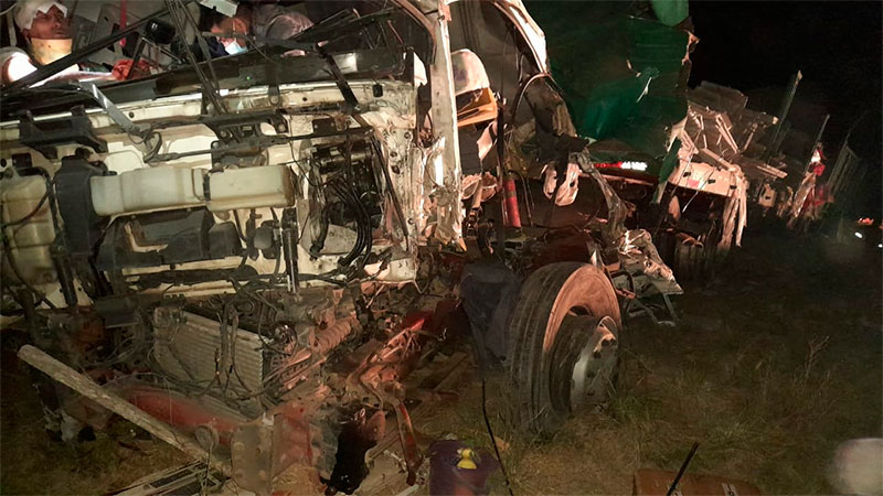 Producto del fuerte impacto, un camionero quedó atrapado en la cabina y presentó lesiones, por lo que fue derivado en un primer momento al Hospital San Blas, de Nogoyá.
