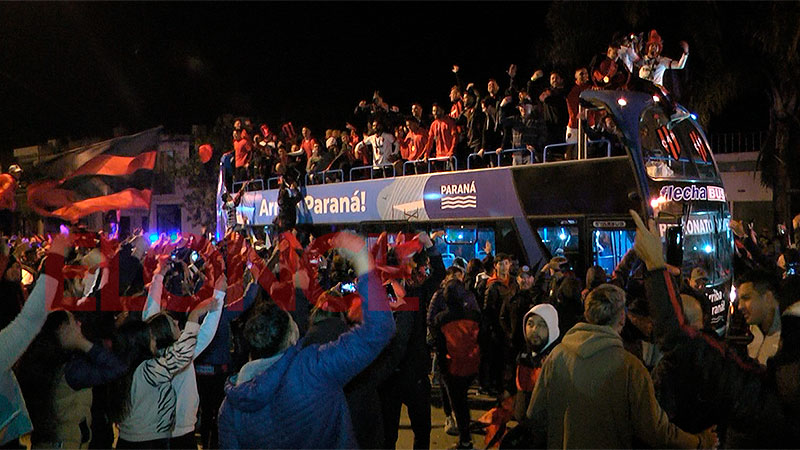 A las 3.15 de este lunes aterrizó en Paraná el avión que trasladó desde Mendoza al nuevo campeón de la Copa Argentina. El plantel se subió al bus turístico y desde allí, con el trofeo en mano, el plantel emprendió el recorrido por las calles, donde recibió el reconocimiento de la hinchada.