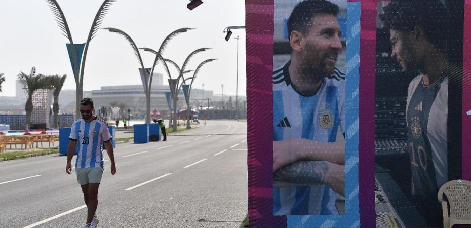 Al salir de la estación aérea, las fotos de Leo con la camiseta argentina se multiplican por la ciudad y recrean el ambiente que envuelve a la primera Copa del Mundo de la historia en Medio Oriente.
